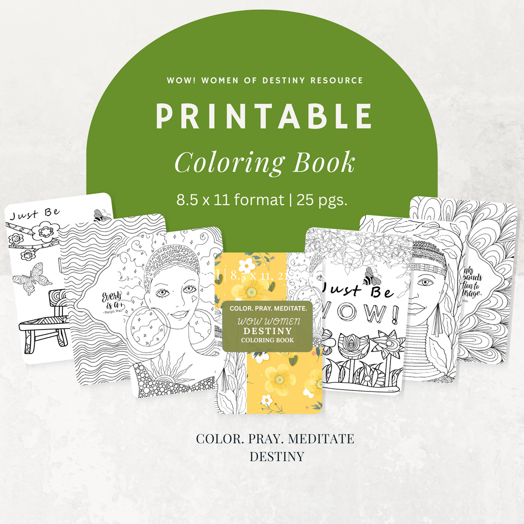 Bible Verse Coloring Book for Women. According to Physiology experts coloring calms and soothes frazzled emotions. Add YOUR passion, purpose and destiny concepts inspired by the WOW! Women Of Destiny book and binder, it serves to cement the Scriptural principles in your heart and mind as you color. The full set of 21 coloring Bible Verse pages. Not all were included in WOW! Women of Destiny Binder.